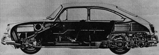 Perfil del Cabriolet 1500. Tenía también baúl trasero gracias a la escasa altura del motor, sólo 45 cm