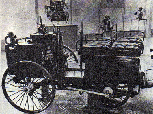 En ese año, ya el triciclo de Benz se comercializaba, mientras Daimler lanzaba su propio modelo de cuatro ruedas a la venta. Su motor giraba a 900 rpm superando al de Otto (200 vueltas).