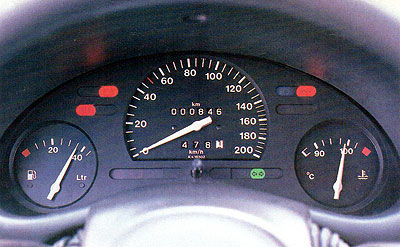 Caracteres claros y simples de leer, porque nada interfiere en la visión del conductor. El velocímetro mostró un escasísimo margen de error en toda la gama. El medidor de temperatura se clava en 94 grados, pero la escala es complicada de leer porque no es pareja.