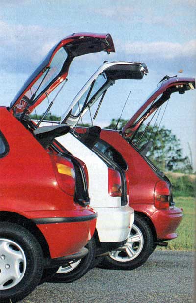 Si hacemos referencia a las capacidades de baúl, el VW es el más aprovechable (285 dm3), luego el Palio (280 dm3) y, por último, el Corsa (260 dm3) aunque los asientos abatibles en mitades atenúan el déficit.
