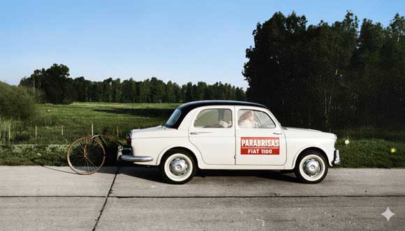 Nuestro grupo de testers acogió con satisfacción la noticia de que el primer test de PARABRISAS se haría con un Fiat 1100; se trata de un coche que tiene un sólido prestigio cimentado en años de experiencia y de perfeccionamiento por etapas, que comienzan con los modelos de la década 1930 - 1940, de 1000 cm3, posteriormente llevados a los actuales 1100. Muchos de esos modelos viejos aún circulan por caminos y calles de nuestro país.