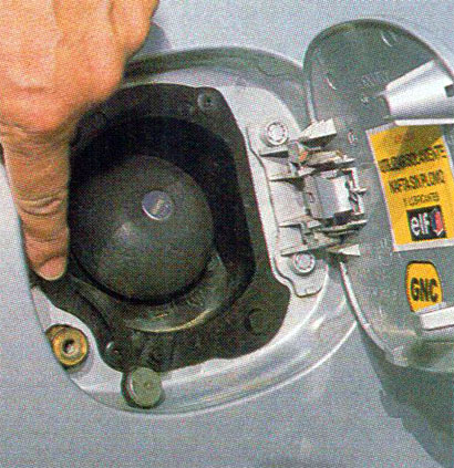 Junto a la tapa del tanque de nafta, accesible pico para el gas